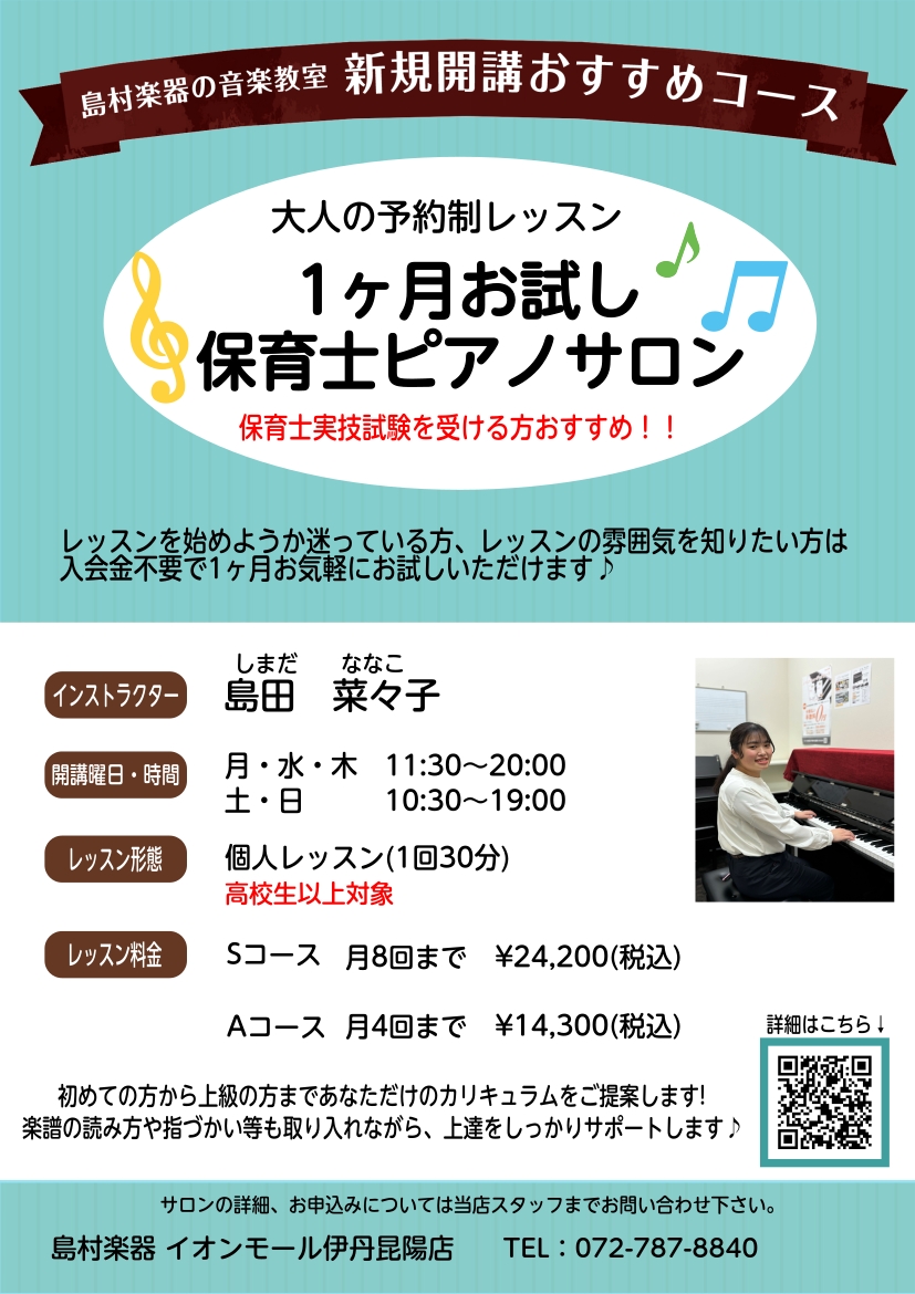 島村楽器イオンモール伊丹昆陽店では、保育士実技試験の対策レッスンを開講しています。