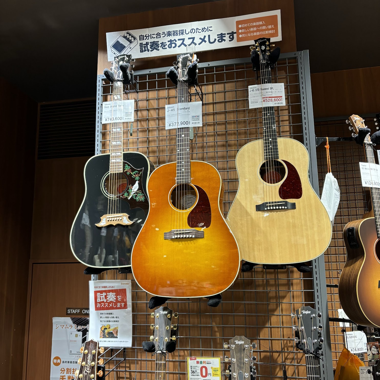 特に、今春からお取り扱いを開始した話題の「Furch」や、島村楽器でオーダーしていたカスタムの「Gibson」が目玉です✨
