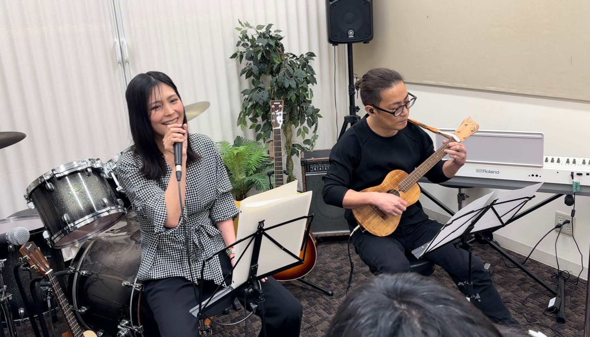 力強く優しい歌声と柔らかく温かいウクレレの音色が心に沁みる演奏でした🍀