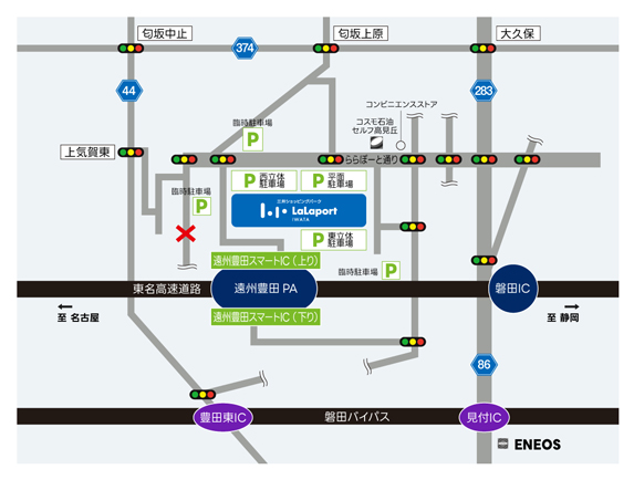 ららぽーと磐田はバイパスからも高速道路からも比較的ご来店しやすい位置にございます。