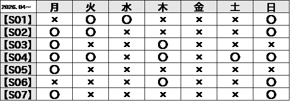 ※曜日によって、使用している科コースが異なります。レッスンの休みも変動制ですので、まずはお電話にてお問い合わせください。