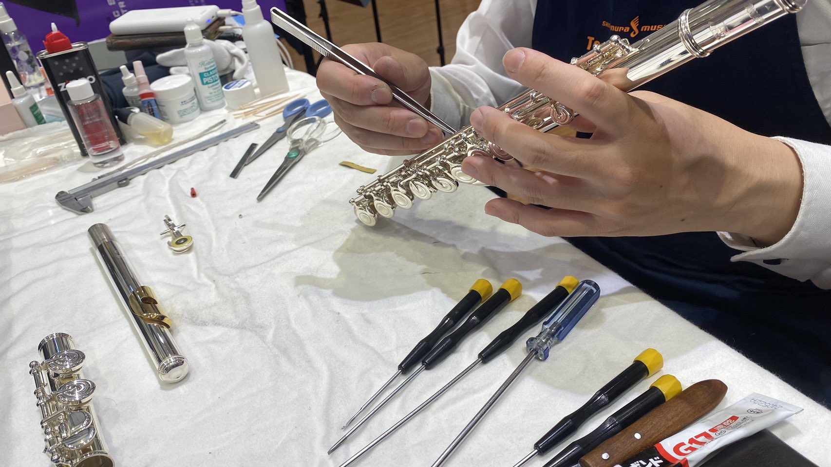 島村楽器の管楽器点検会はこのように行います。