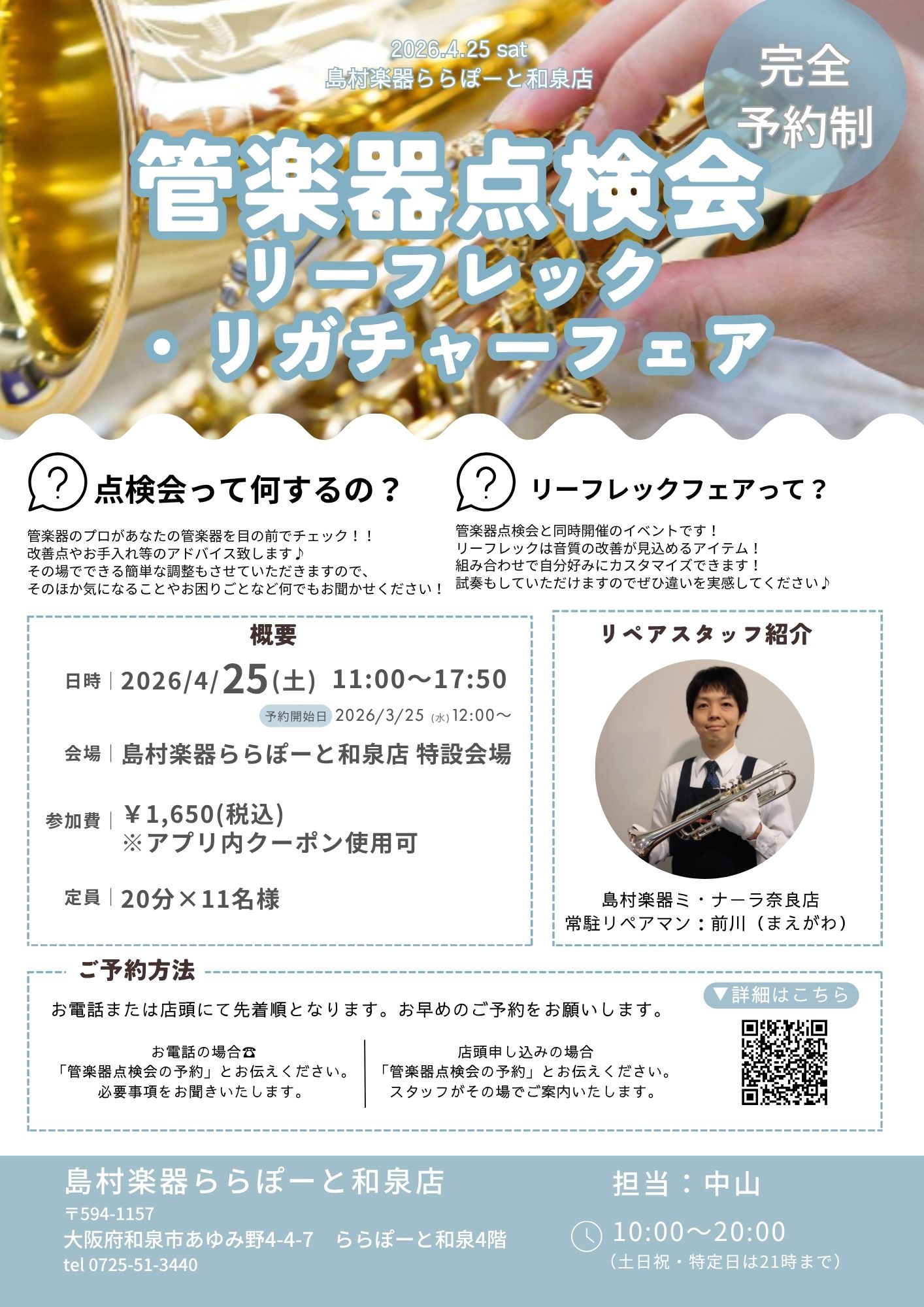 管楽器点検会2026/4/25(土)開催!!4/25~5/2アクセサリーフェア同時開催!!✨
