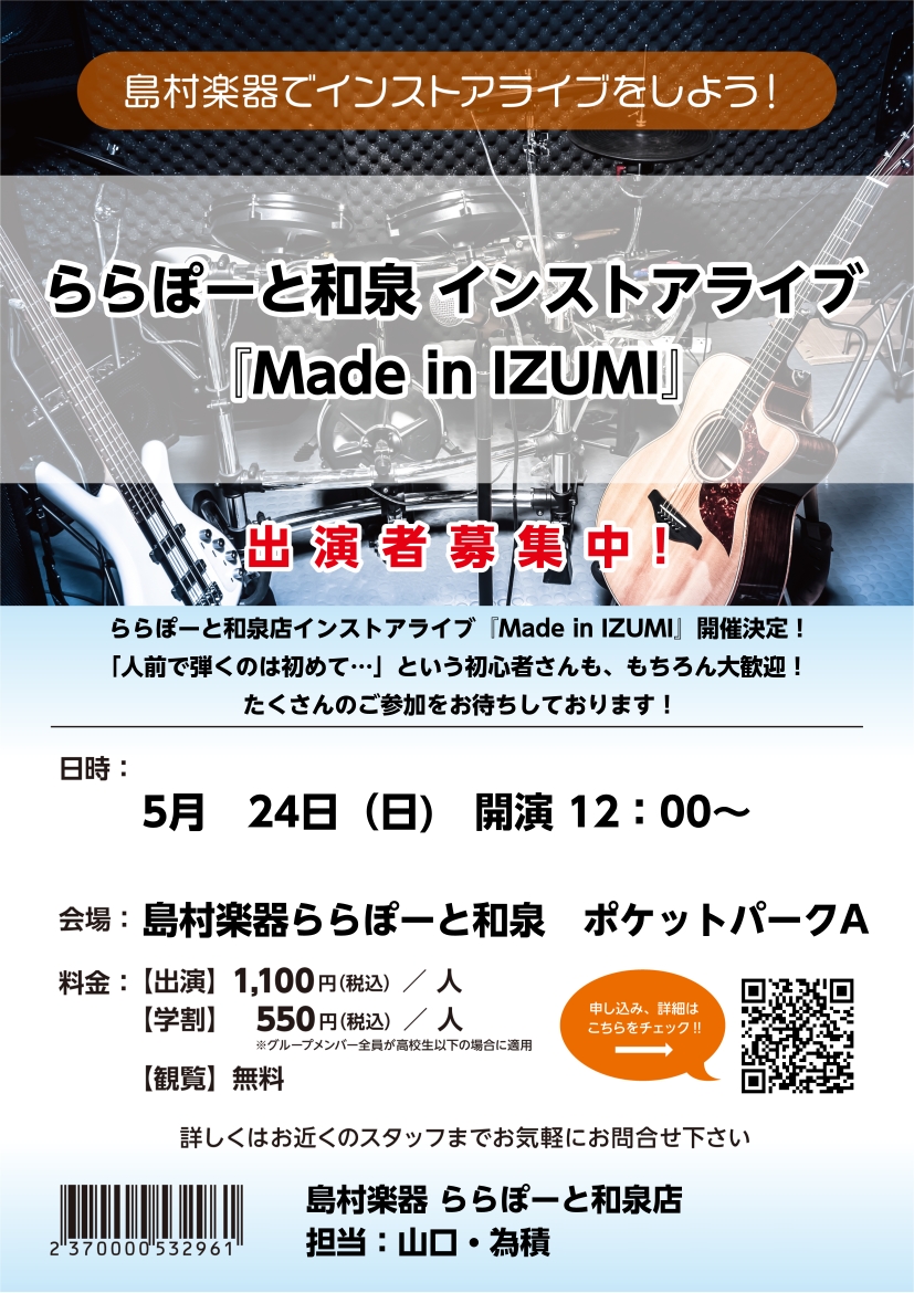 インストアライブ『Made in IZUMI』開催決定!ご出演アーティスト募集中!