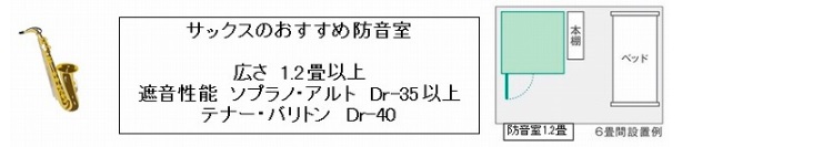 | バイオリン チェロ/トランペット / トロンボーン | 1.5~2.0畳 | Dr-35以上(夜間はDr-40推奨) | 5.0畳 | 音圧が強いので、少し広さと性能に余裕を |