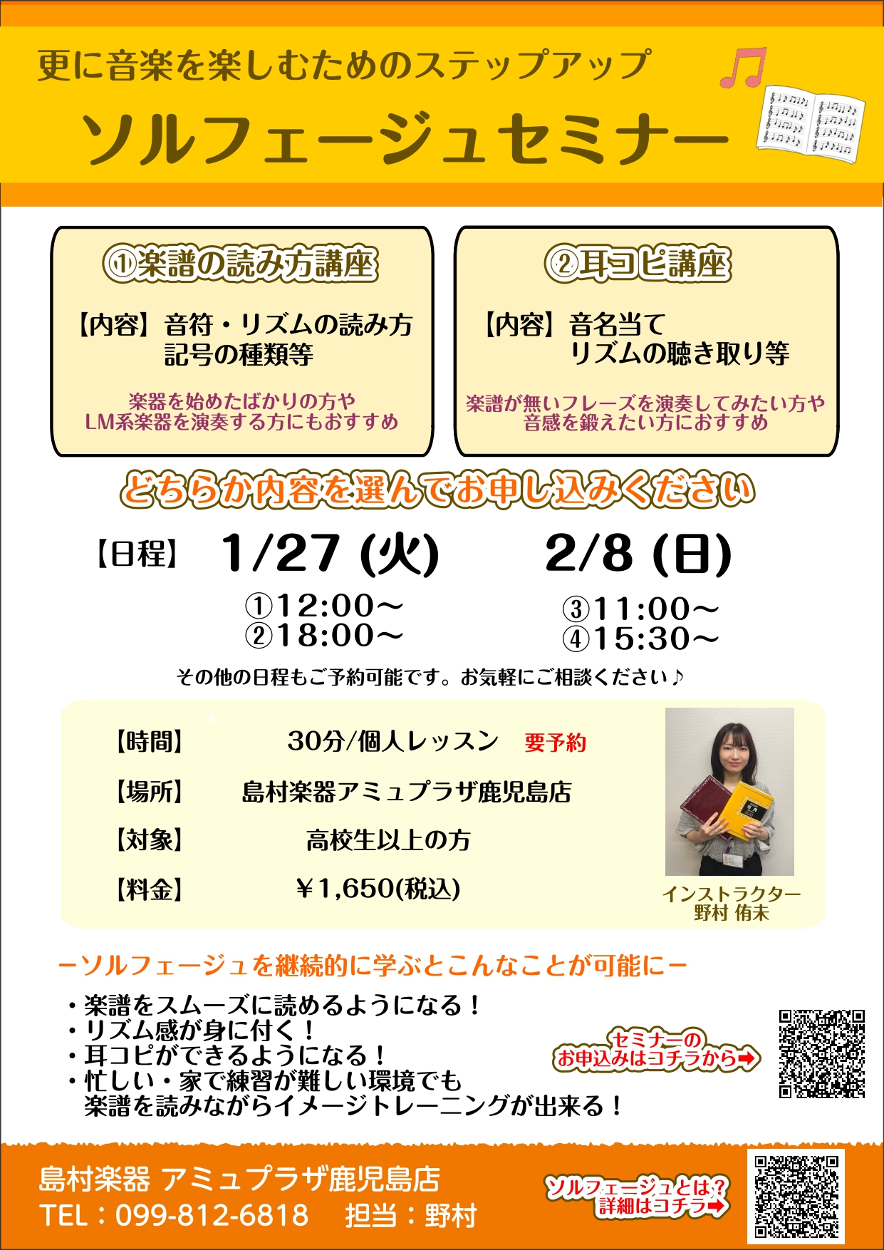 ![CONTENTSソルフェージュ体験会について体験会日程ソルフェージュ体験会 こんな方におすすめ!担当インストラクターお問合わせソルフェージュ体験会について こんにちは!ソルフェージュ・ピアノ・保育士ピアノ・キーボードサロンインストラクターの野村です。1月・2月にソルフェージュ体験会を開催します! ソ […]](https://www.shimamura.co.jp/shop/kagoshima/wp-content/uploads/sites/76/2026/01/20260112-product_shima251228-0079-1_template_pdf-1_page-0001.jpg)
