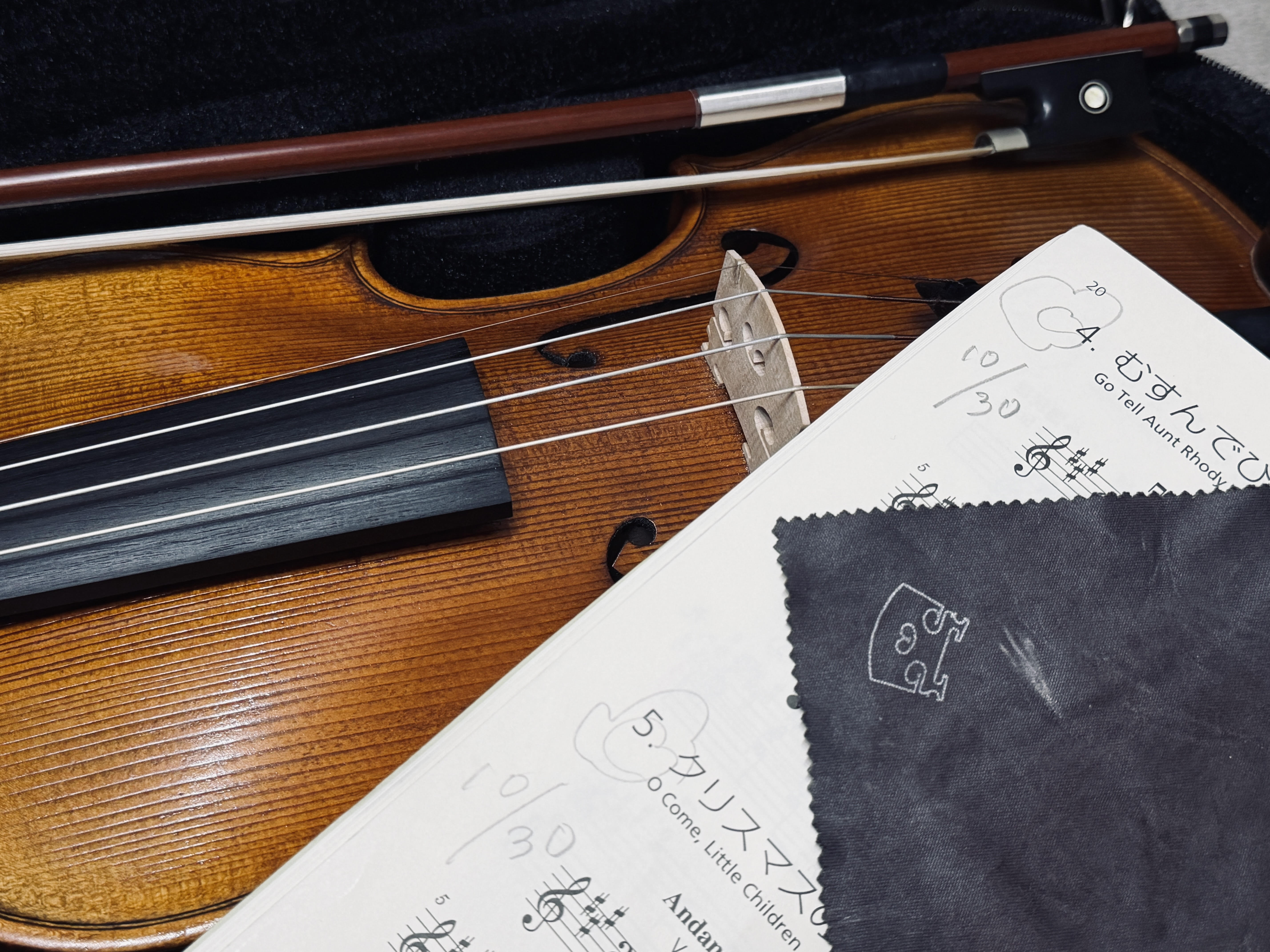 特に「クリスマスのうた」は初めてアウフタクトという弾き方(曲の途中の拍?のようなイメージ)+弓のアップからのスタート+苦手な小指という3拍子が揃っていてかなり苦戦しました・・・。