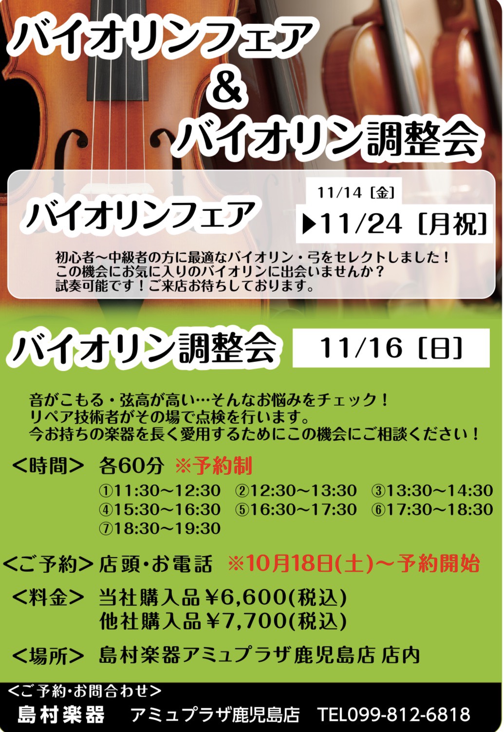 ![2025年11月14日(金)~11月24日(月・祝)までバイオリンフェア開催!11/16(日)にはバイオリン調整会も同時開催! 初心者から中上級者の方に最適なバイオリンや弓をセレクトしたフェアを開催します。この機会にお気に入りの1本に出会いませんか? また、当社の工房の弦楽器技術者がヴァイオリンとヴ […]](https://www.shimamura.co.jp/shop/kagoshima/wp-content/uploads/sites/76/2025/11/20251101-585773291152343466.jpg)