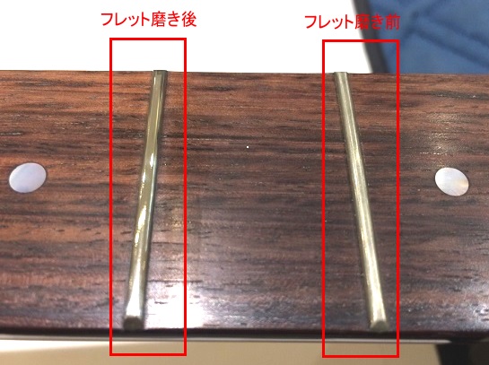 普段メンテナンスで行き届かないような指板・フレットの汚れを綺麗にすることによって、音の立ち上がりや、スムーズなビブラート、チョーキングが蘇ります。また、あなた自身のモチベーションが上がること間違いなし!!
