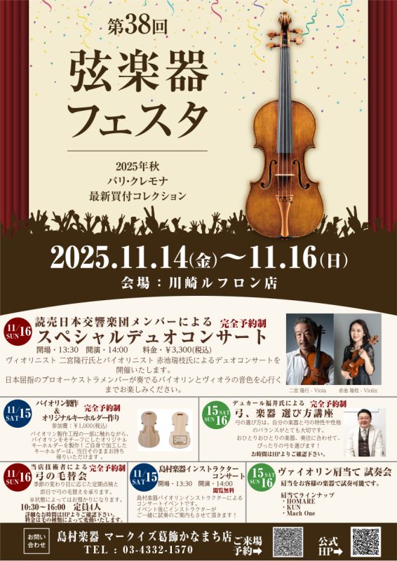 【専門スタッフがご案内!】弦楽器フェスタ 11/14(金)~11/16(日)川崎ルフロン店にて開催!※ご来場・試奏予約受付中