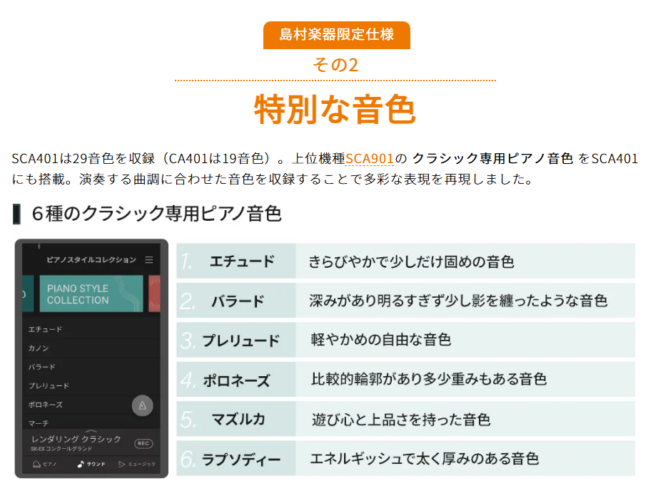 ![皆さんこんにちは島村楽器金沢店 電子ピアノ担当の戸嶋です当店の電子ピアノラインナップご紹介!今回ご紹介させていただく機種は「木製鍵盤の電子ピアノが欲しい!」という方から大好評 KAWAI 「SCA401」 CONTENTS商品説明CA401との違い88鍵 全て木製鍵盤実際のグランドピアノの音を2台分 […]](https://www.shimamura.co.jp/shop/kanazawa/wp-content/uploads/sites/55/2025/10/20251019-20240812-20230518-20230516-sca401mbpw.jpg)