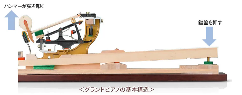 鍵盤がハンマーを押し上げ、ハンマーがセンサー(弦)を叩くシーソー式構造をそのまま採用することで、違和感のない自然なタッチを実現しました。