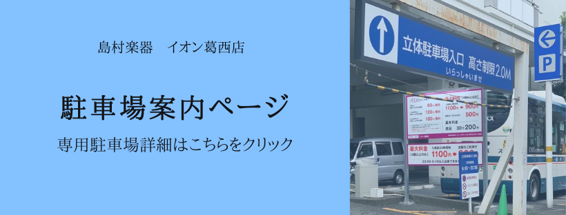 島村楽器イオン葛西店でお買い物のお客様は駐車料金無料サービス券を発券しておりますので、お車でお越しのお客様はお会計時にカウンターまでお声かけください。