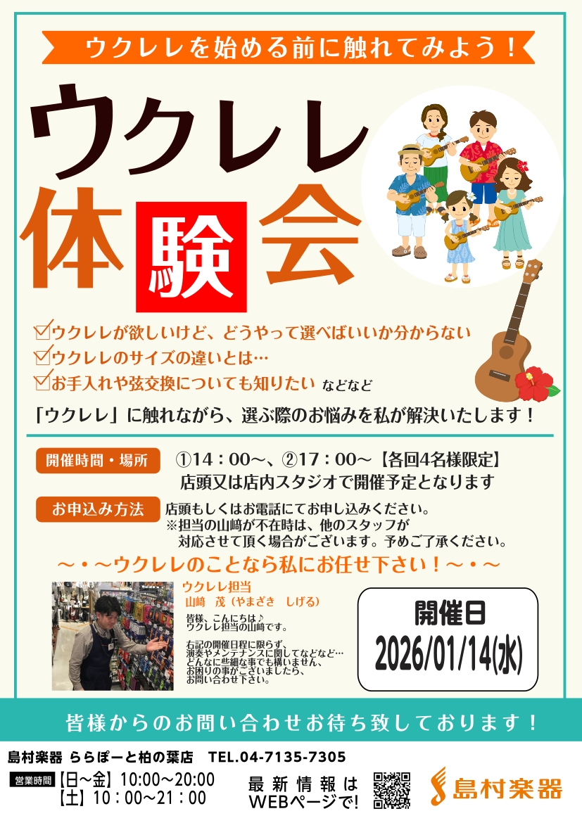 ウクレレ体験会のご案内♪2026年1月14日(水)開催決定