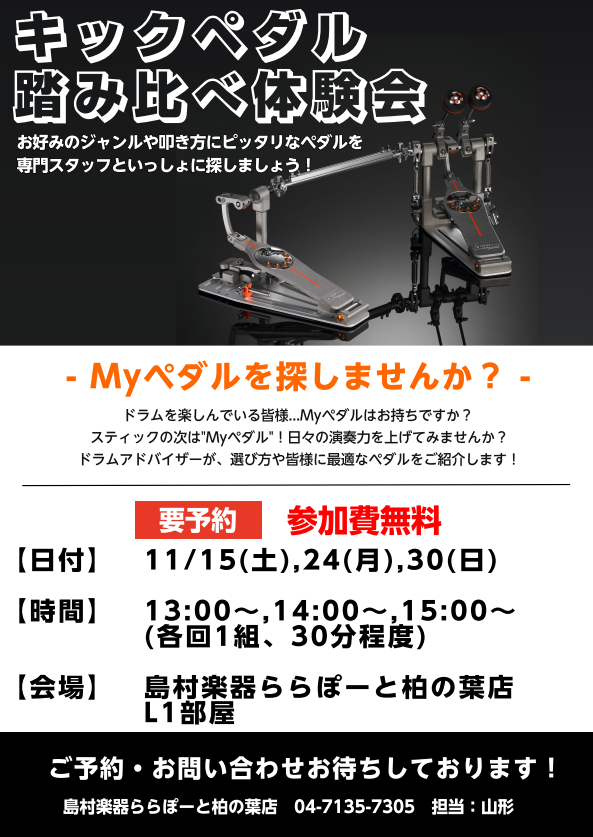 キックペダルは身体とドラムを繋ぐ大切な機材!今まで叩けなかったフレーズがペダルを変えることで叩けるようになることも・・・?店頭でペダルごとの違いを体験してみませんか? CONTENTS店頭ラインナップはこちらお申込みについてドラム担当が詳しくご案内します!ドラム選び方相談会実施中!ドラムアドバイザー […]