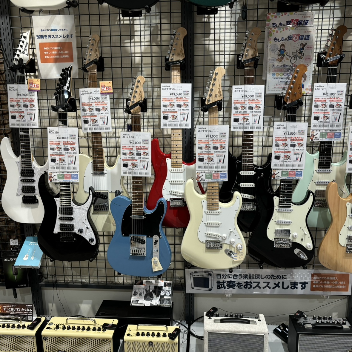 エレキギター・ベースはもちろん、アコースティックギター・クラシックギター、アンプやエフェクターも取り扱っております!