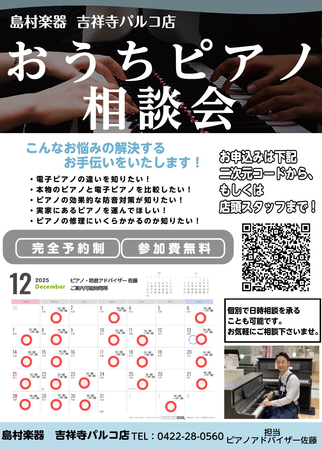 ピアノアドバイザー: 佐藤宛てにお電話下さい。