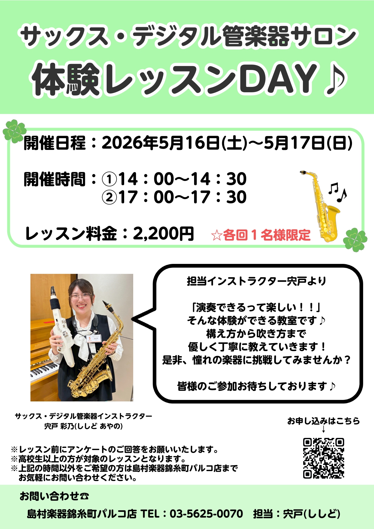 【5月のサックス・デジタル管楽器サロン体験レッスンDAY🎷】