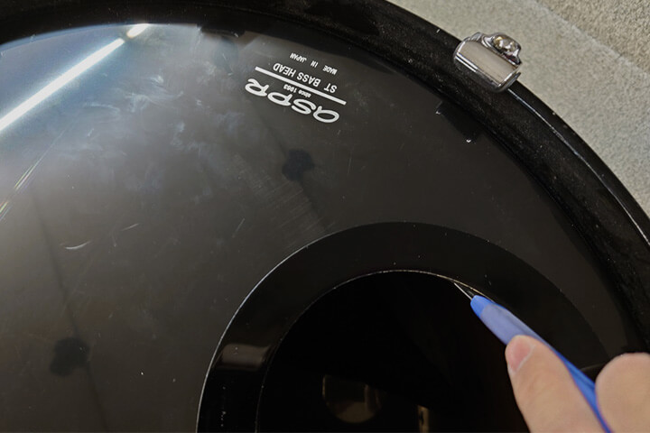 REMOのホールカットリング(5 1/2径)を使用し、フロントヘッドのお好みの場所にホールカットを施します。
