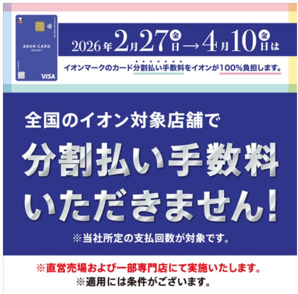 2026年2月27日(金)~4月10日(金)はイオンマークのカード分割払い手数料をイオンが100%負担します!