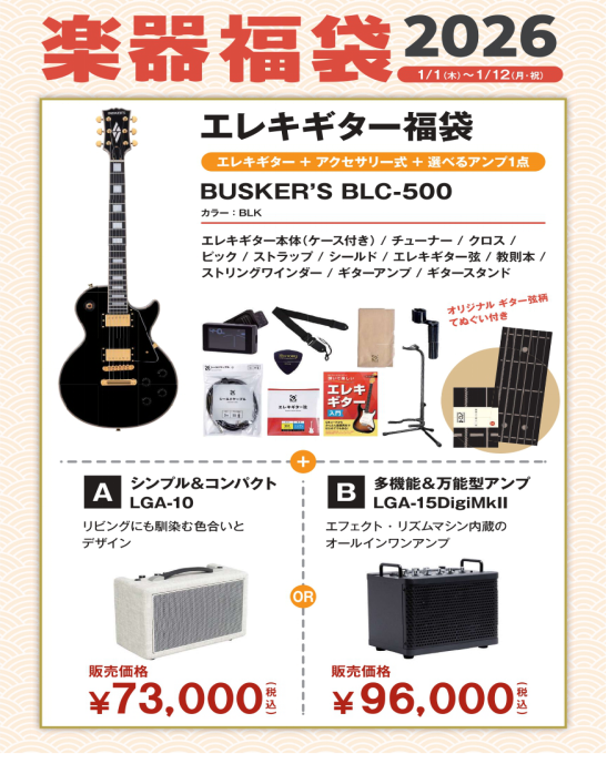 元旦からは数量限定の楽器福袋をご用意いたします。