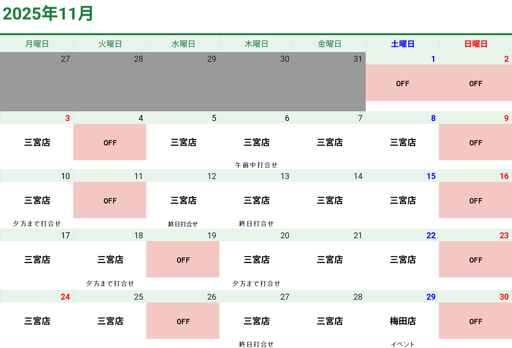 また、急に予定が変更になっている場合もございますので、あくまでも目安としてご利用ください。(一度店舗へご連絡入れていただけると間違いありません。)