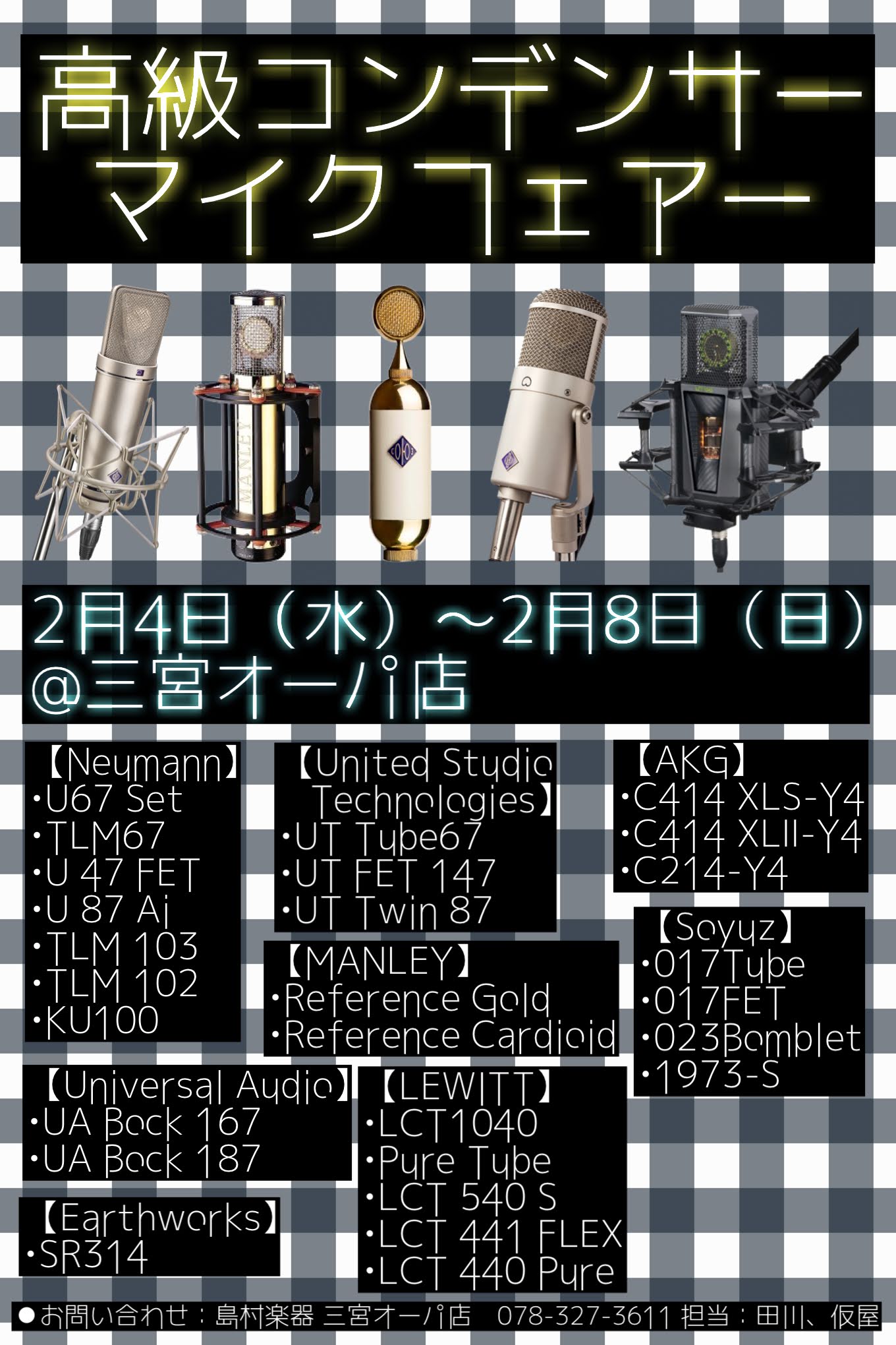 エントリーモデルからハイエンドマイクまで、普段なかなか試すことのできない特別なマイクが店頭に並びます。
