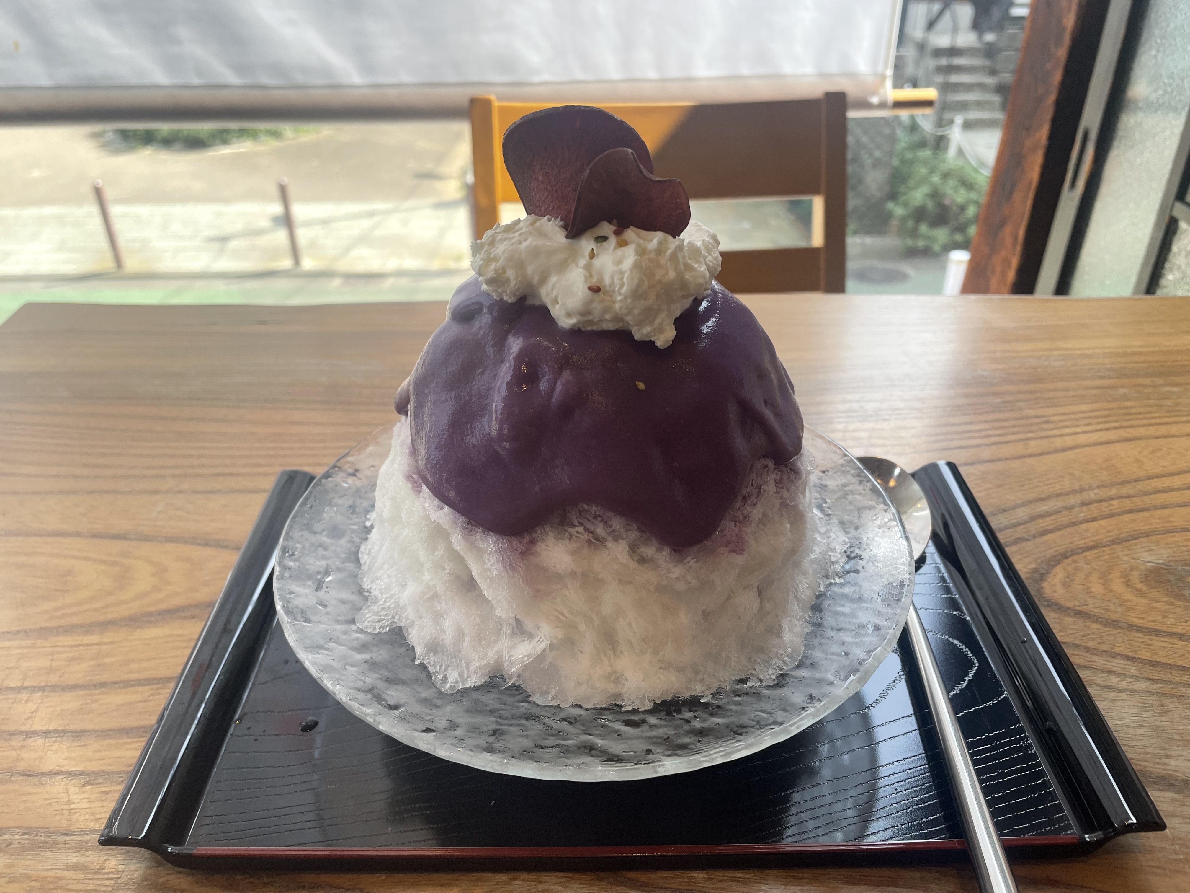 百名店のお店のかき氷で、ふわふわ氷に濃厚お芋シロップ…とても美味しかったです!