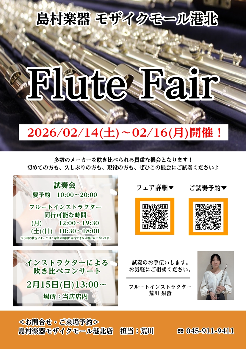 <開催期間 >2026年2月14日(土)〜2026年2月16日(月) 2月フルートフェアの開催が決定! フルートインストラクターによる吹き比べコンサートや、楽器選定のお手伝い等も実施。 ※入荷予定の商品や関連イベントに関しては、こちらのページにて後日掲載いたします! ■お問い合わせはお気軽に とりあ […]