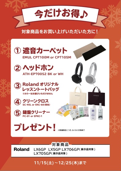 【電子ピアノ】Roland LXシリーズ デジタルギフト プレゼントキャンペーン〈2025年11月1日(土)~2026年1月12日(月・祝)〉