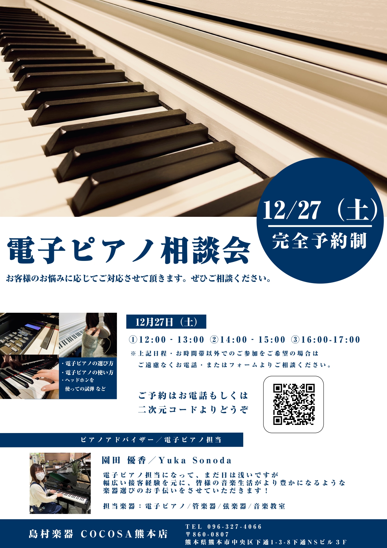 電子ピアノの選び方やメーカーの違い、普段疑問に思われていることをお気軽にご相談いただける場を設けさせていただきました。