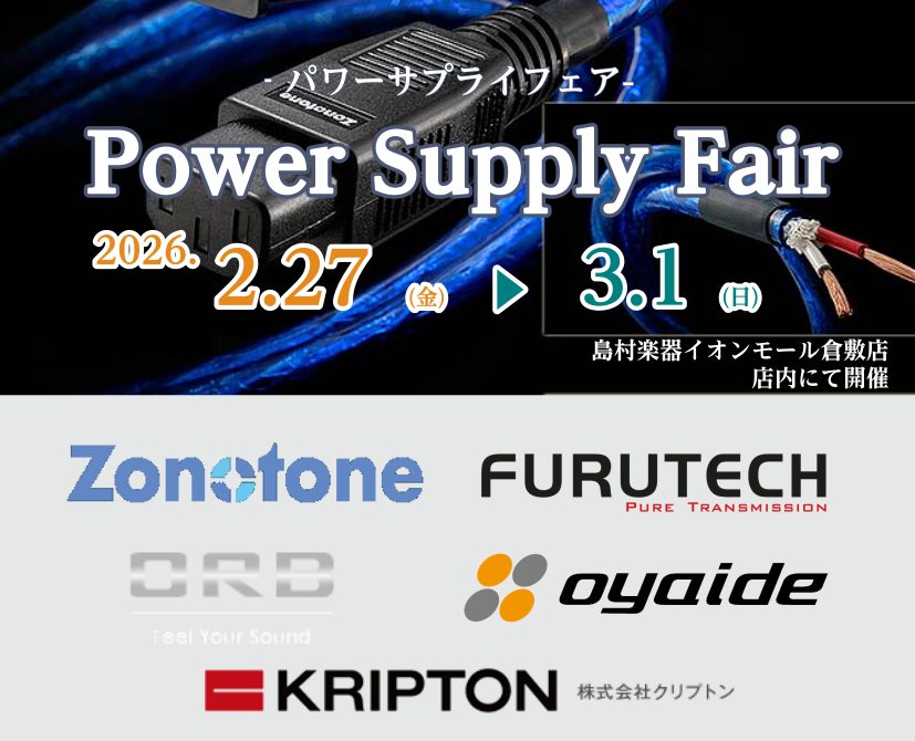 ![CONTENTSフェア概要展示予定メーカー一覧お問い合わせ先フェア概要 超ニッチでホットな展示体験会を開催致します! 今お持ちの機材を「より良くしたい」とお考えの皆様はもちろん、「音質」の違いにご興味がある皆様へおすすめです! 各メーカー様ご協力の元、日本屈指の電源ケーブル・電源タップの品揃えとなっ […]](https://www.shimamura.co.jp/shop/kurashiki/wp-content/uploads/sites/11/2026/02/20260206-power-supply-fair_page-0001.jpg)