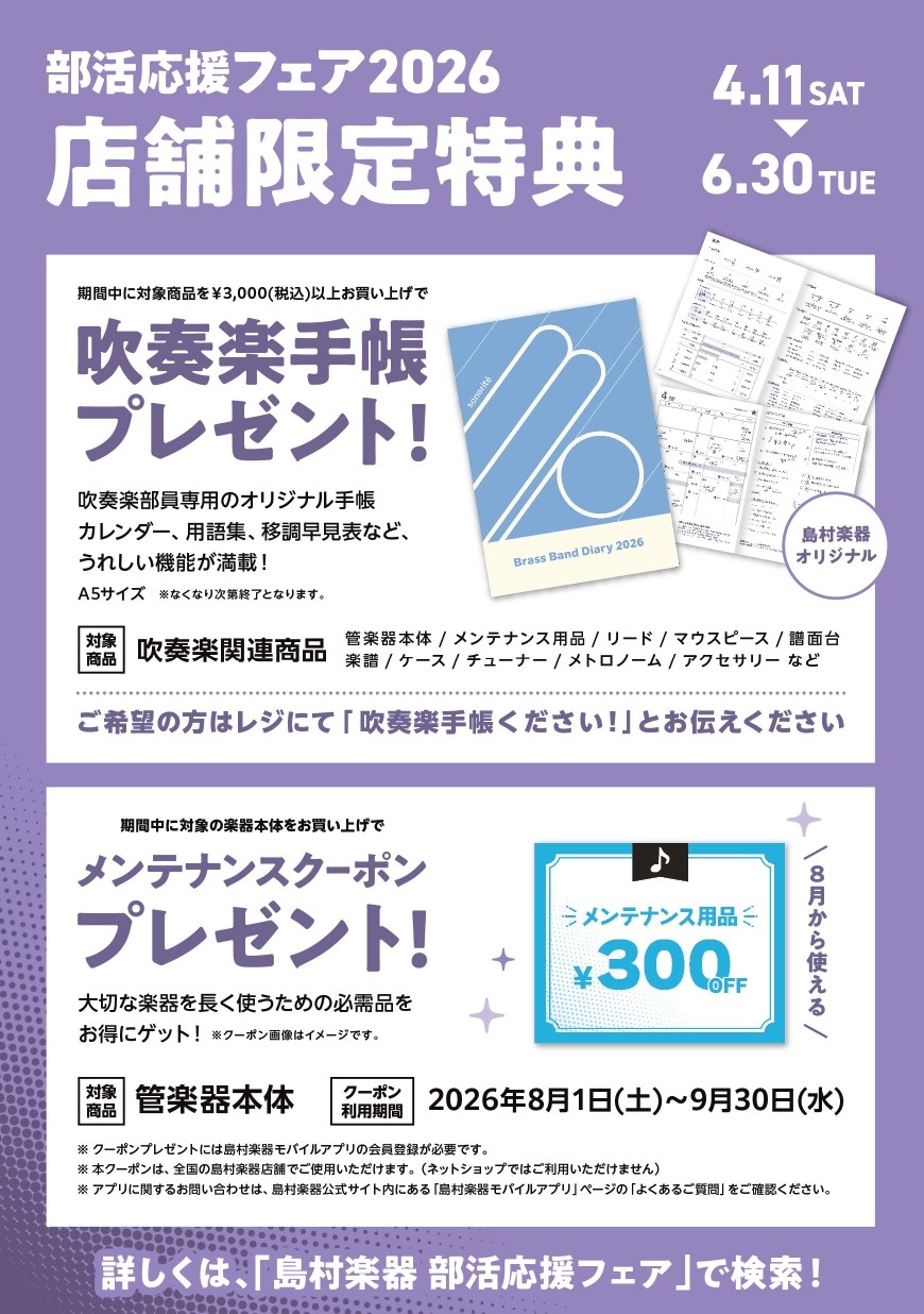 軽音楽部、吹奏楽部に新たに入部される皆さんや、先輩になる皆さんも、島村楽器が全力でサポートいたします。
