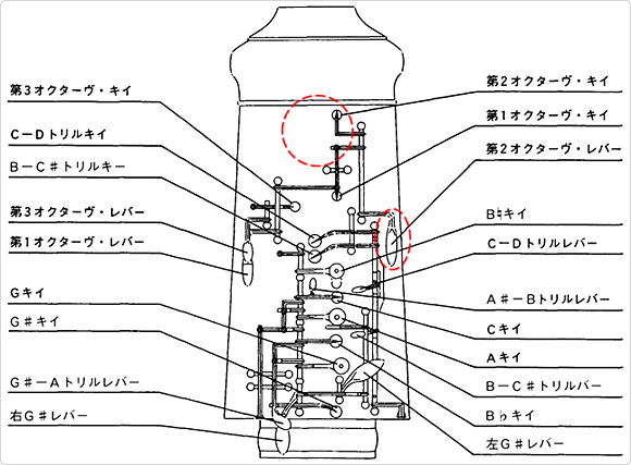 第2オクターブキイの操作が必要ですが、替え指の柔軟性が高く、全世界で広く使用されています。