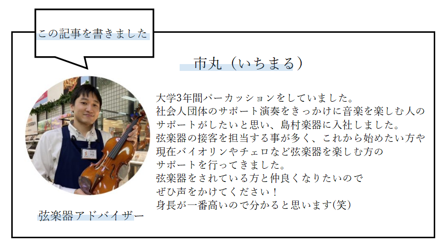 ![弦楽器アドバイザーの市丸(いちまる)です。いよいよ開催間近に迫った弦楽器フェスタ2025in岩田屋福岡店、同時開催でチェロ大展示会も開催します♪ 今回の記事では、買い付けしたばかりのバイオリンRicardo Sanchez 2025をご紹介いたします。 本商品以外にも数多くのここでしか出会えない弦楽 […]](https://www.shimamura.co.jp/shop/kurume/wp-content/uploads/sites/70/2025/12/20251206-20251003-0dcb2a3a24a465e48c4f2340417d3b8c.jpg)