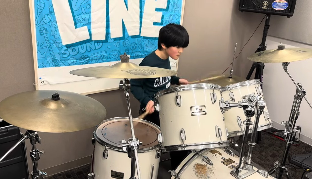 演奏が始まると表情が一変、、!大人顔負けのドラムソロを披露してくれました。