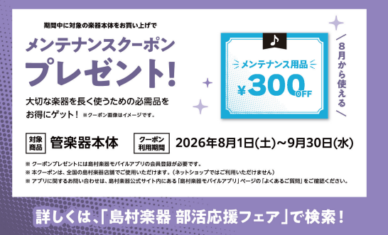 島村楽器モバイルアプリ会員登録で300円OFFクーポンをプレゼント!!