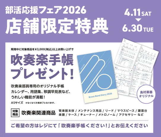 3000円以上お買い上げで「吹奏楽手帳」をプレゼント!