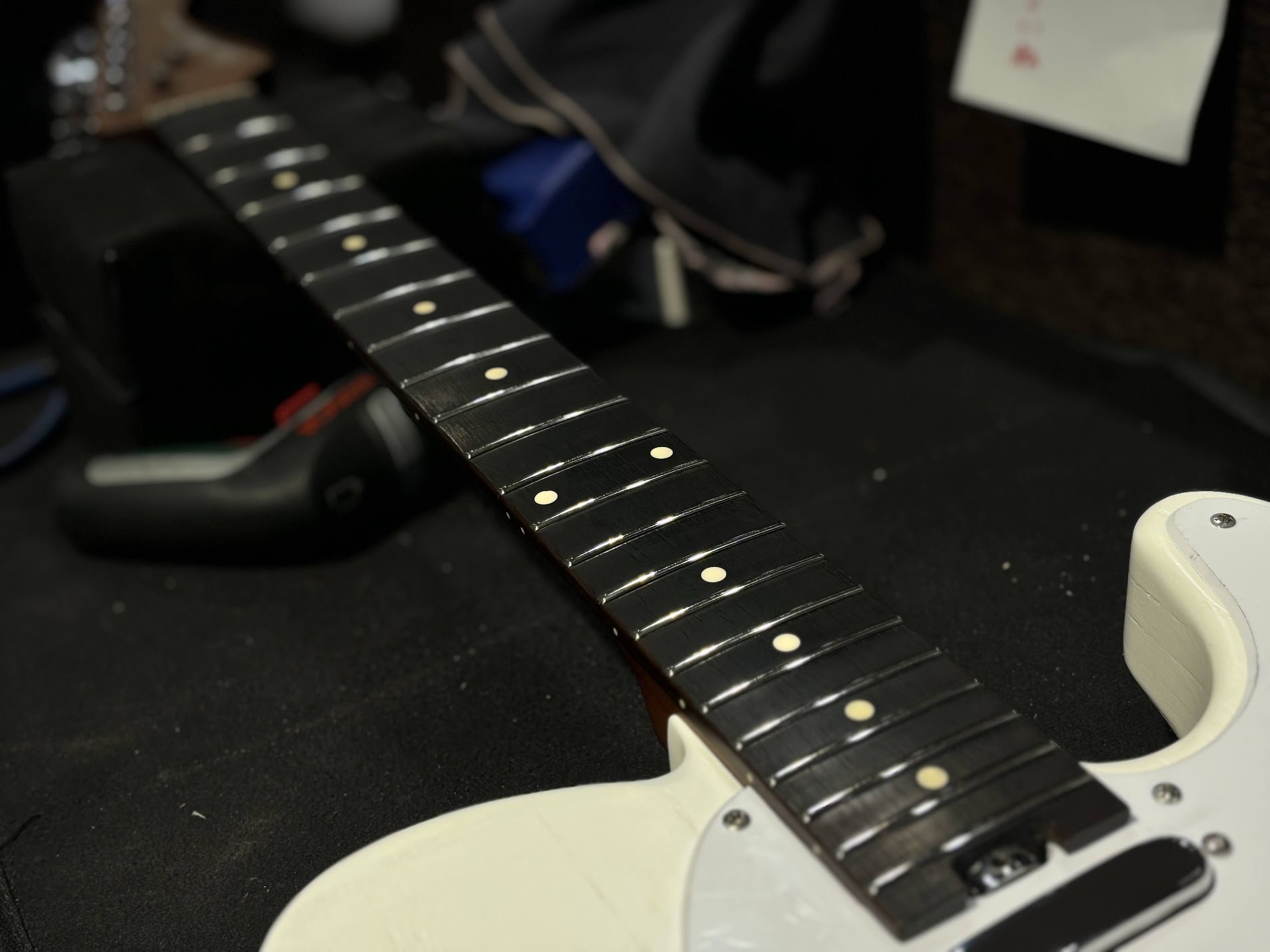 チューニングしてネックの状態確認します。まじか、全然反ってない・・・・・。これはネックガチガチのテレキャス君です。