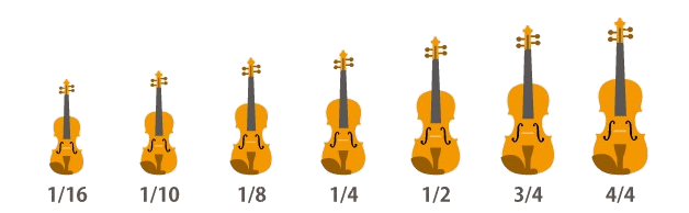 1/16、1/10、1/8、1/4、1/2、3/4と異なるサイズのヴァイオリンがあります。