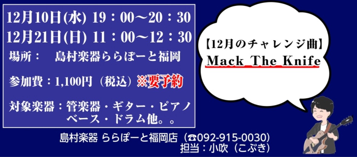 ![CONTENTSららぽーと福岡店にてジャズセッションしてみませんか??当店セッションの流れご参加頂いた方々からのコメント今月の課題曲 (2025年12月)今まで行ってきた課題曲ご予約はコチラから!担当ららぽーと福岡店にてジャズセッションしてみませんか?? 大変多くの方にご参加いただき、反響を頂いてお […]](https://www.shimamura.co.jp/shop/l-fukuoka/wp-content/uploads/sites/206/2025/12/20251201-589704626099192406.jpg)