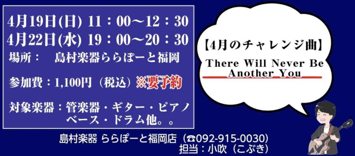 ![CONTENTSららぽーと福岡店にてジャズセッションしてみませんか??当店セッションの流れご参加頂いた方々からのコメント今月の課題曲 (2026年4月)今まで行ってきた課題曲ご予約はコチラから!担当ららぽーと福岡店にてジャズセッションしてみませんか?? 大変多くの方にご参加いただき、反響を頂いており […]](https://www.shimamura.co.jp/shop/l-fukuoka/wp-content/uploads/sites/206/2026/03/20260317-605522504714813816-1.jpg)