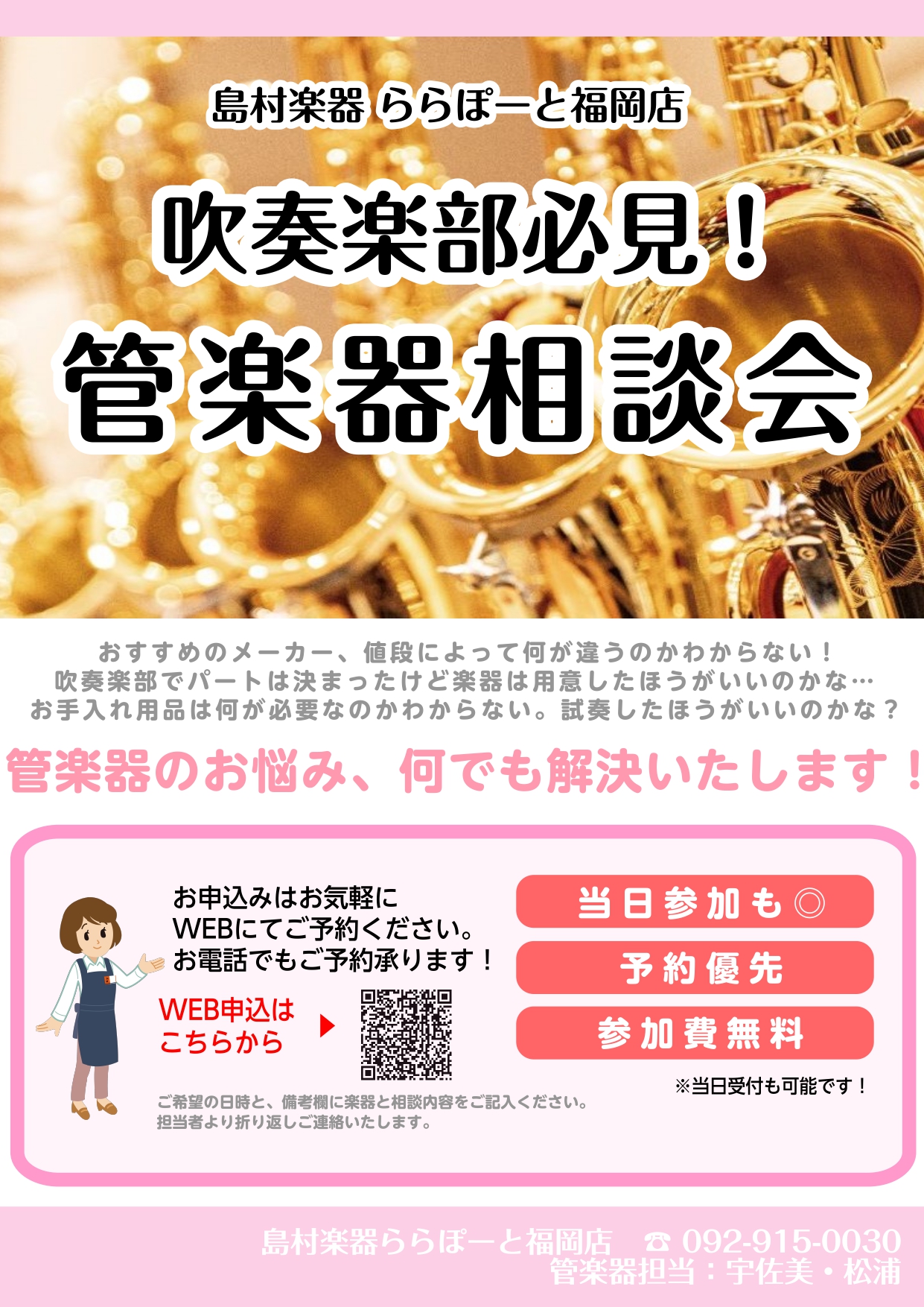 島村楽器ららぽーと福岡店の管楽器アドバイザーがサポートいたします♪
