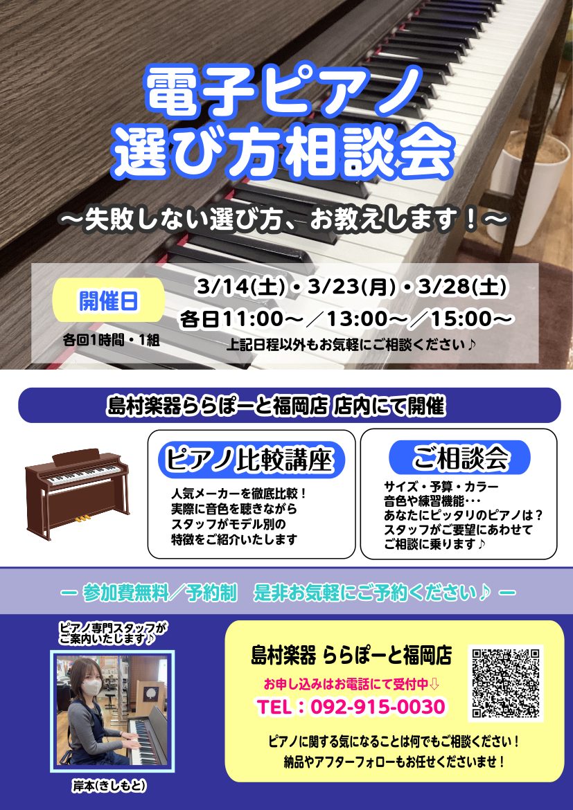 3月【電子ピアノ☝】選び方相談会開催します♪