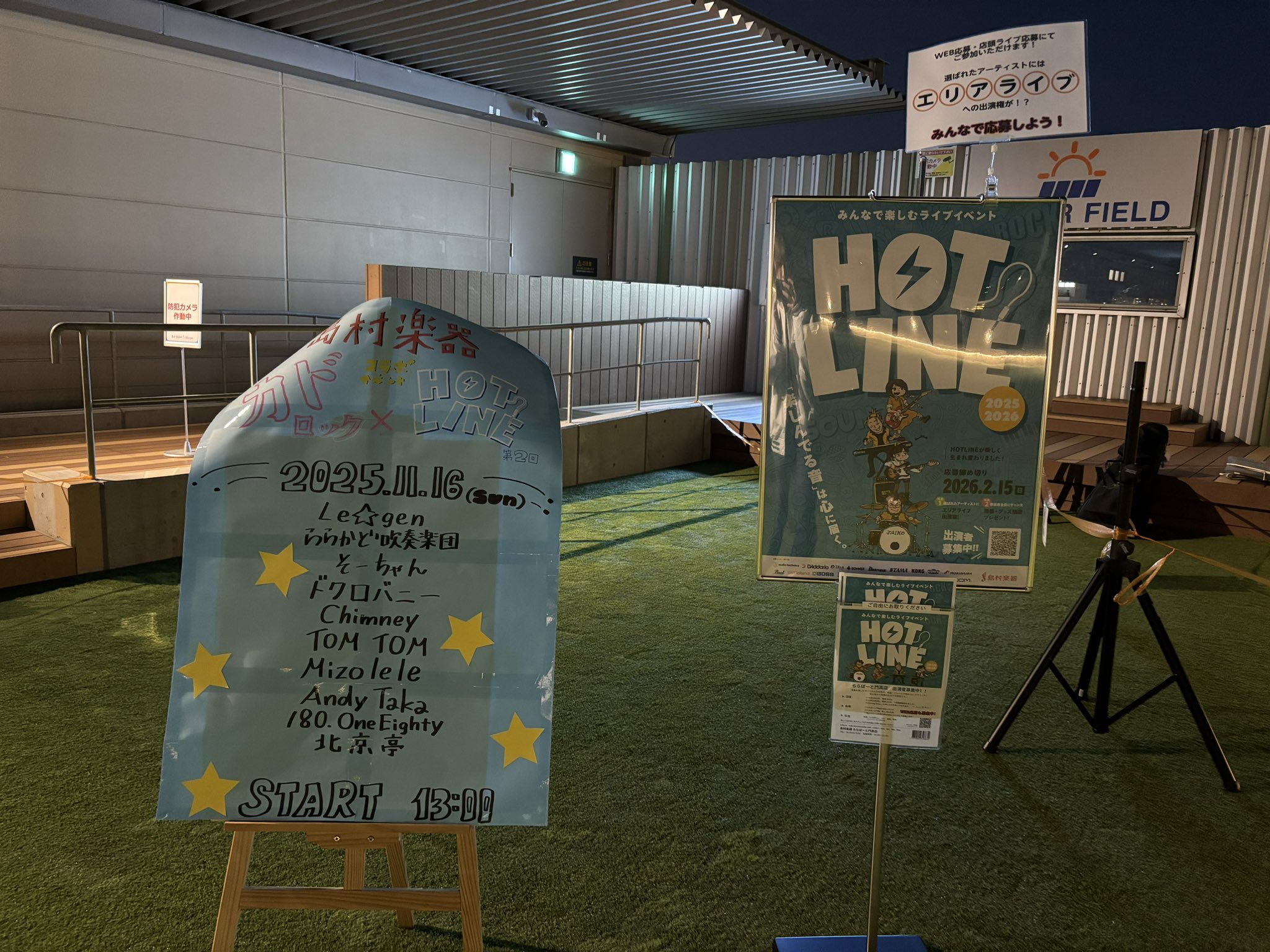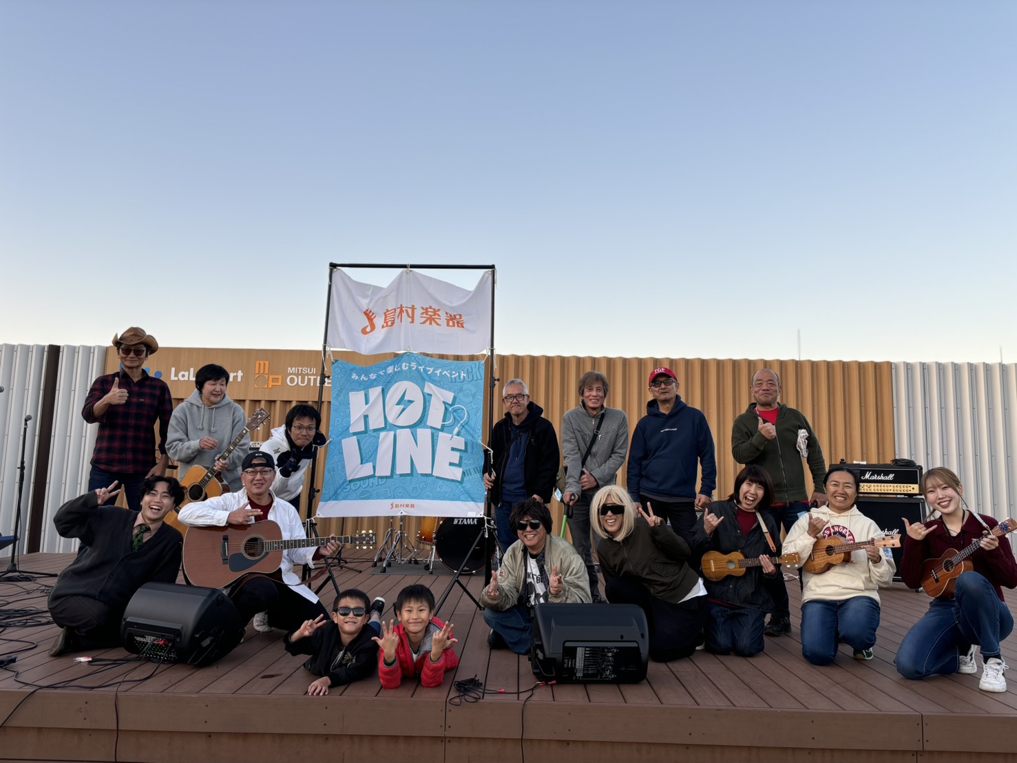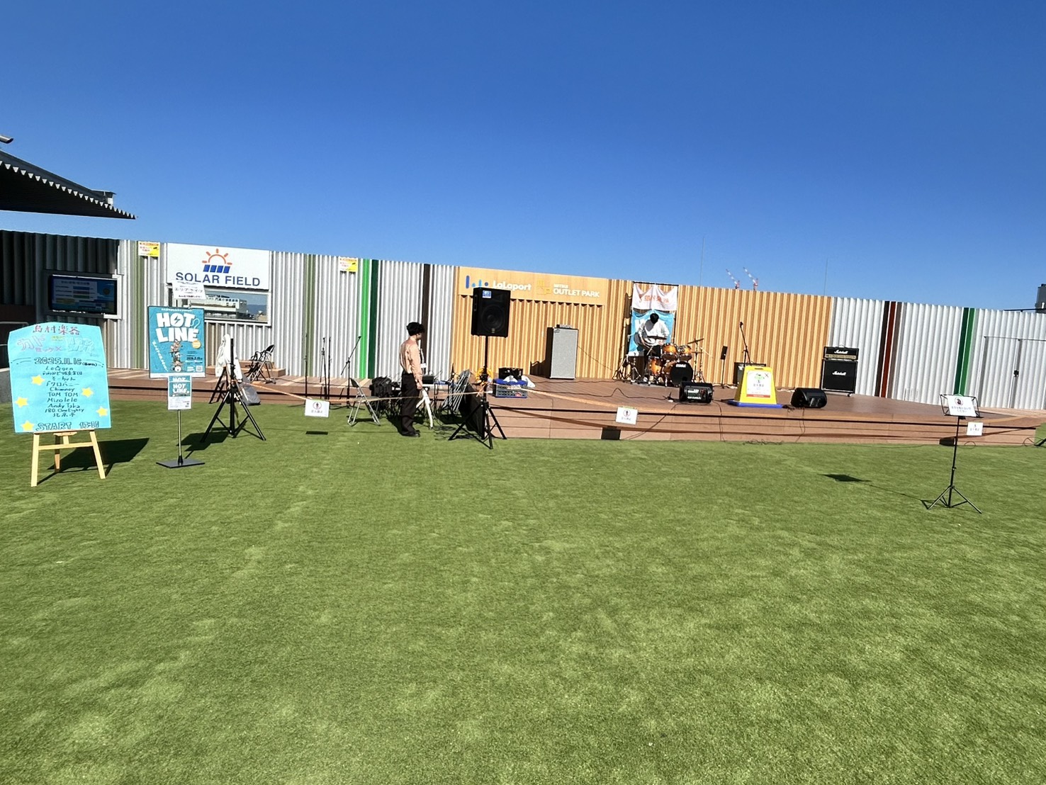 島村楽器ららぽーと門真店の独自イベント「カドロック」と島村楽器の全国規模のイベント「HOTLINE2025」のコラボイベントとして、ららぽーと門真 屋上「空の広場」にて開催いたしました~!