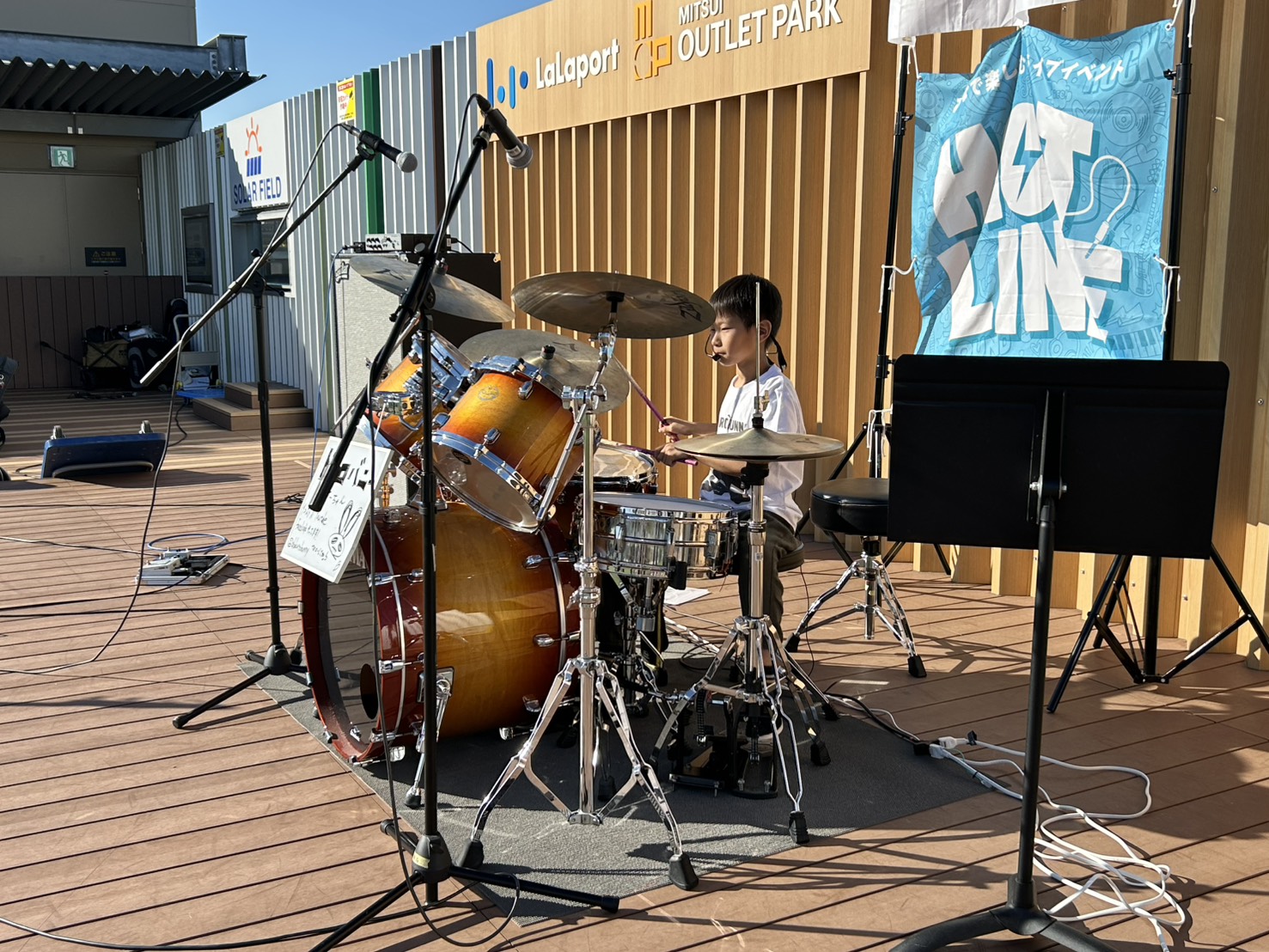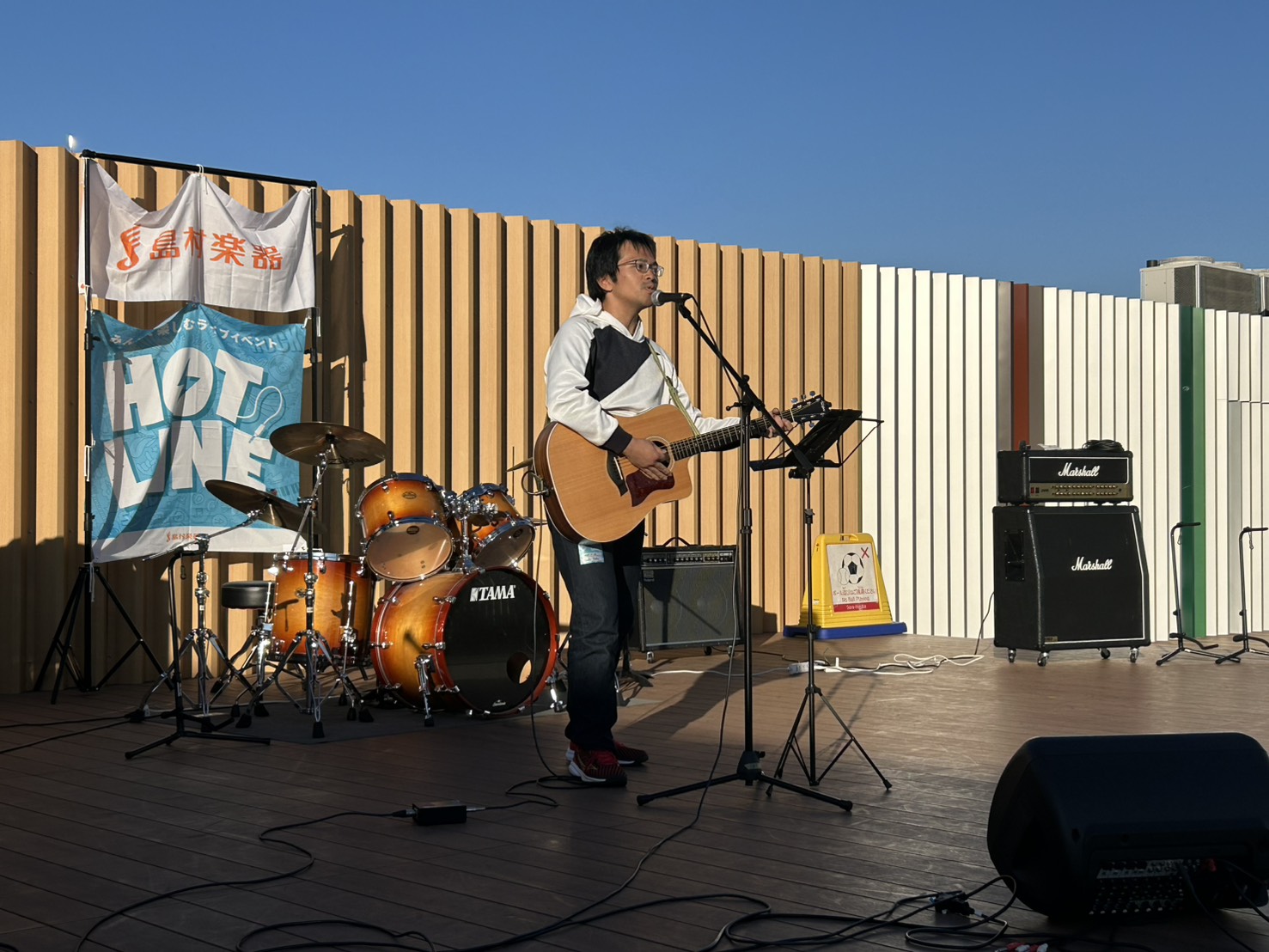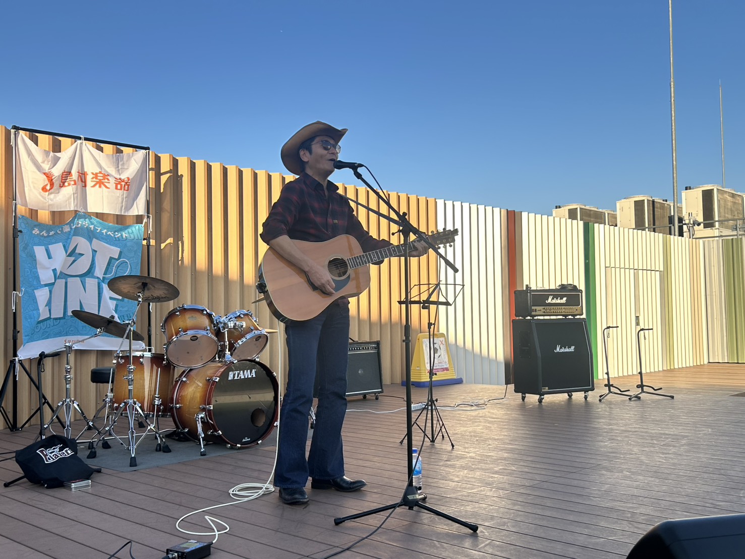 島村楽器ららぽーと門真店の独自イベント「カドロック」と島村楽器の全国規模のイベント「HOTLINE2025」のコラボイベントとして、ららぽーと門真 屋上「空の広場」にて開催いたしました~!