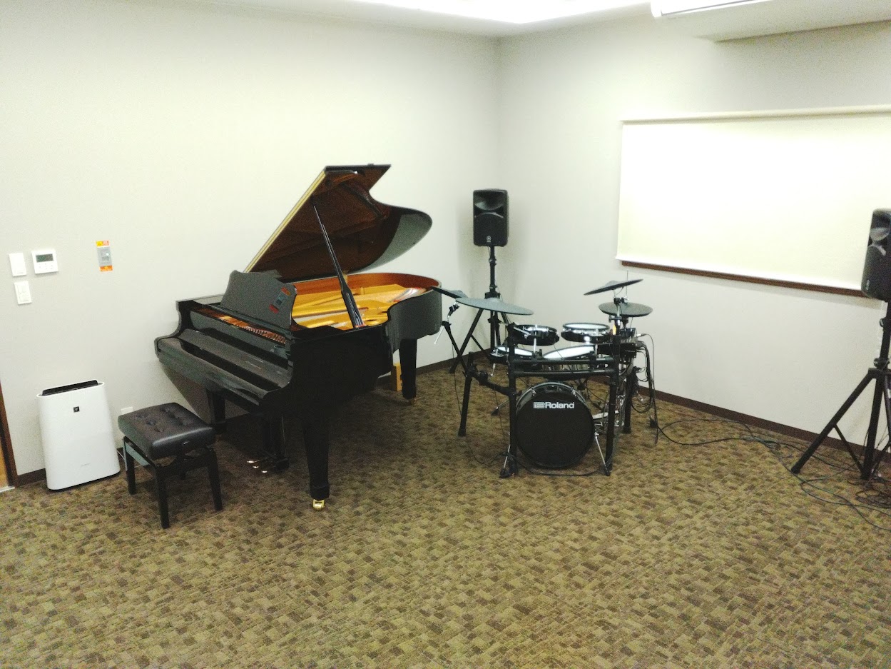 グランドピアノをはじめとして、電子ドラム、ギターアンプ、ベースアンプを常備し様々なアンサンブルや練習にお使いいただけます。