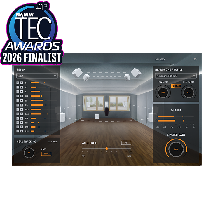 Neumann ヘッドホンで 3次元的なイマーシブサウンドを体験してください。RIME(Reference Immersive Monitoring Environment)は Dolby Atmos などのマルチチャンネルフォーマットでミキシングとマスタリングを行うための DAW プラグインです。RIME はNeumann の技術と AMBEO アルゴリズムを使用することで、驚くほどリアルな3D音像を作り出し、他の再生システムにも完璧に対応します。