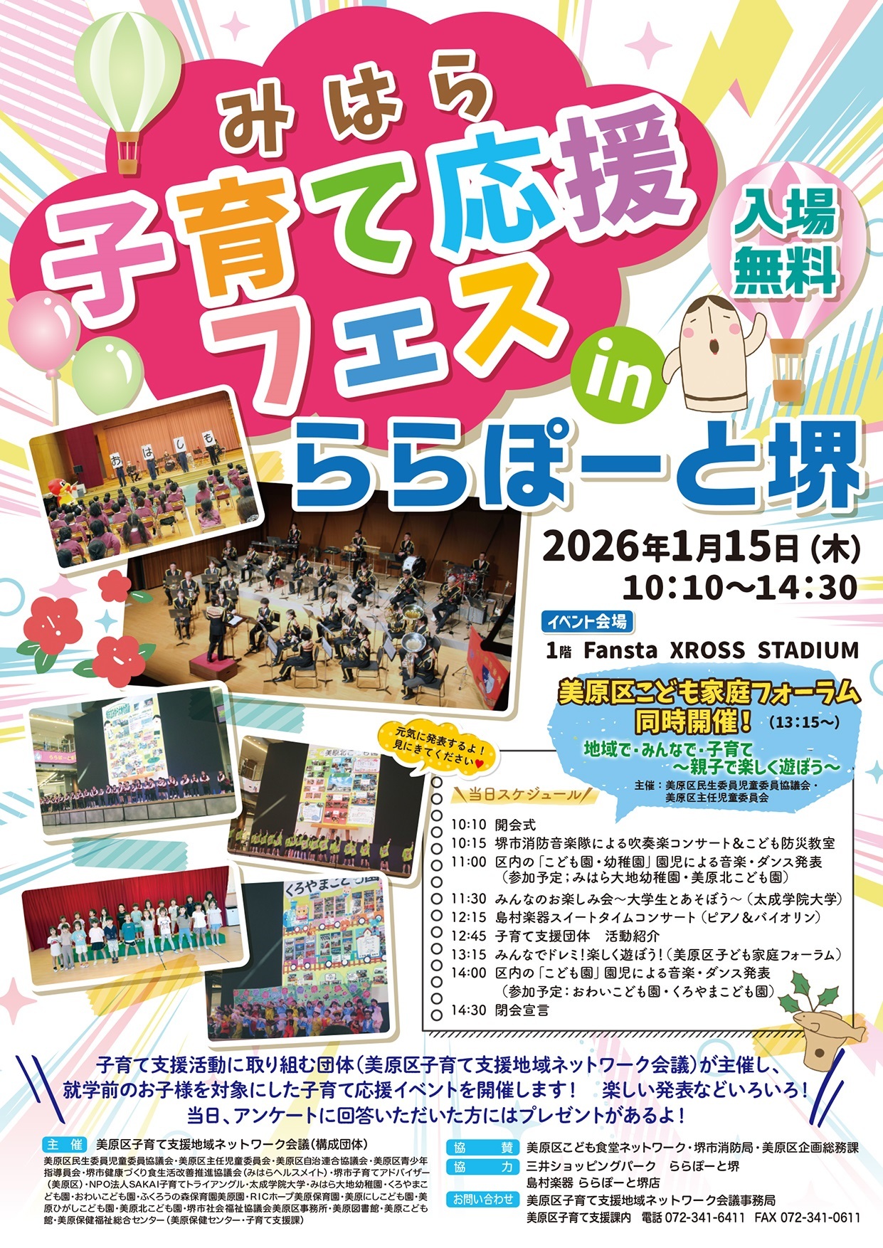 1月15日(木)、みはら子育て応援フェスinららぽーと堺にて「Sweet Time Concert」を行います!