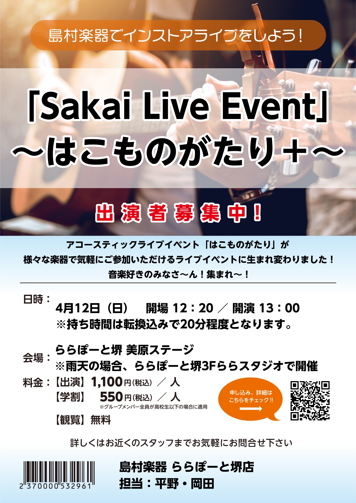 「Sakai Live Event~はこものがたり+~」4/12(日)開催決定!